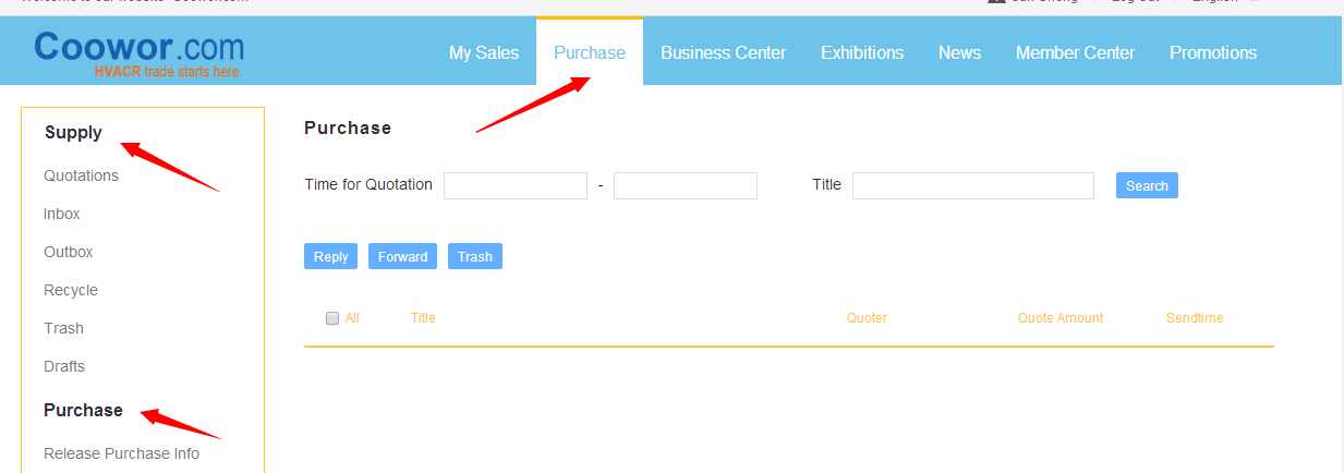 Business center: get inquiries from buyers. When you get an inquiry, please reply the buyers in a timely manner. Coowor.com will also remind you to check the inquiry at the first time by email.